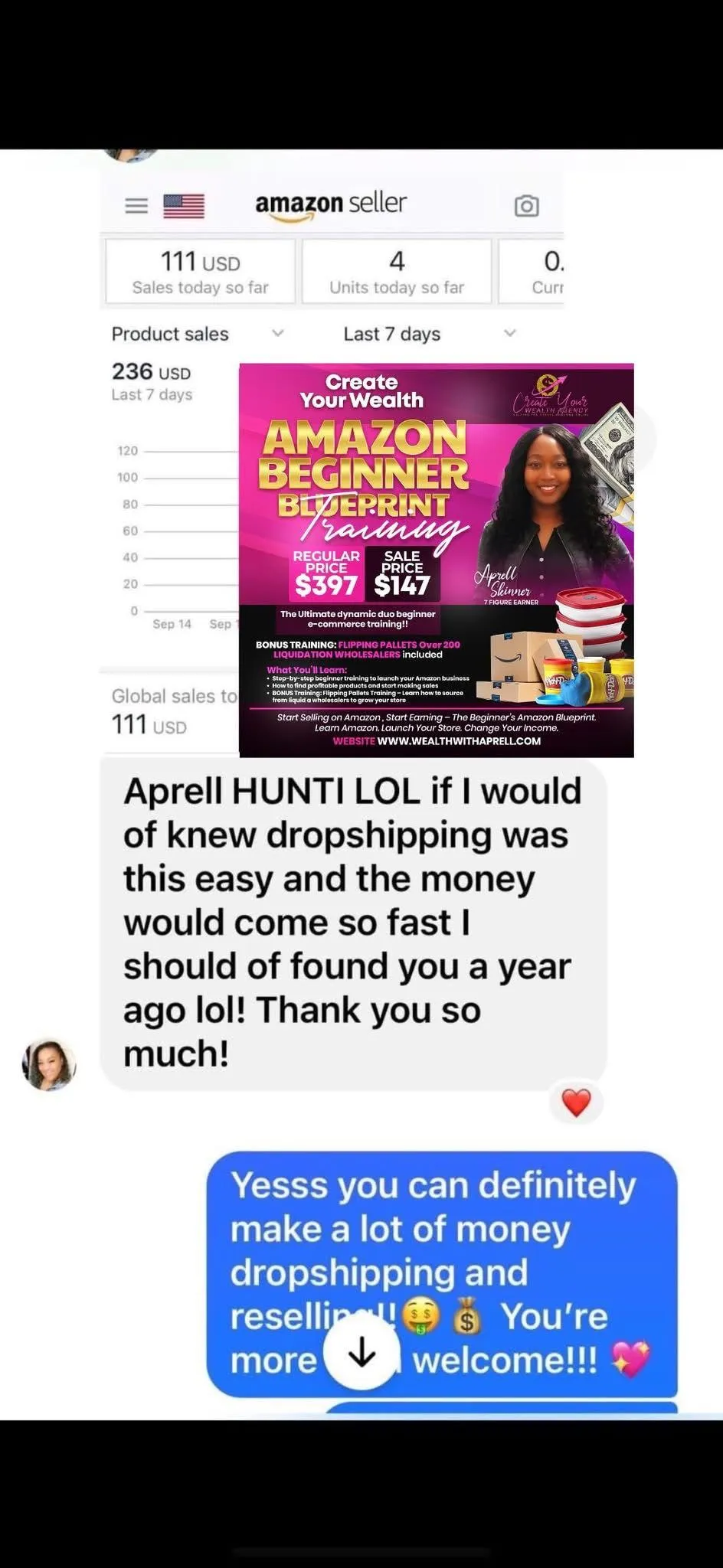 Hi, I am Aprell Skinner — founder of Create Your Wealth Agency, a digital brand and Amazon business that has generated over $1 million in profit. I help everyday people create real income online through Amazon, automation, and simple digital services and strategies — no fancy branding, big following, or bulk inventory needed.